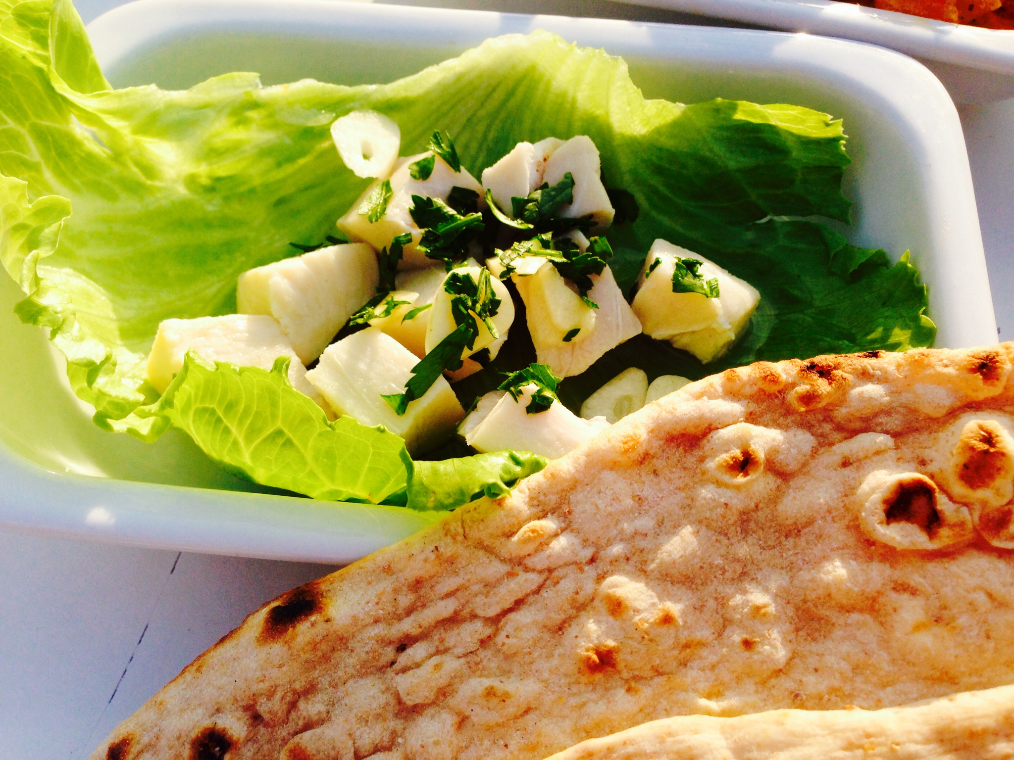 So we swam and sun-baked and then we feasted on a wide variety of Mezze platters served with tannour bread, flat bread cooked in a tannour oven, sourced locally. Two dishes in particular caught my eye, the first was a vegetarian cabbage rolls dish served cold and the other was a marinated fish dish that bears a close resemblance to ceviche. Everything we tasted was so fresh and delicious, from the fish kibbe balls with nuts and herbs filling to the tender lemony calamari, garden salad and shanklish with tomatoes and herbs.