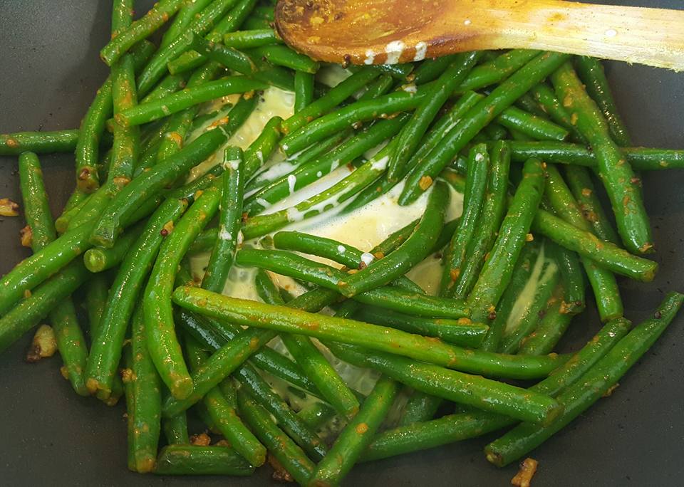 I first came across this recipe at a Nepalese restaurant, and I really liked the combination of crispy green beans with the richness of coconut. Subtle Indian spices were also a perfect addition. I loved it so much, I decided to attempt something similar at home. It was a spur of the moment decision to recreate this dish on Boxing day, I thought it would make a perfect accompaniment to the main dishes. My guests loved it so much, they all asked for the recipe, but had to wait until I cooked it again, and measured. I finally got to remake it and now everyone can enjoy it. This is super easy, and a wonderful change from the bland steamed green beans. You will love it too.